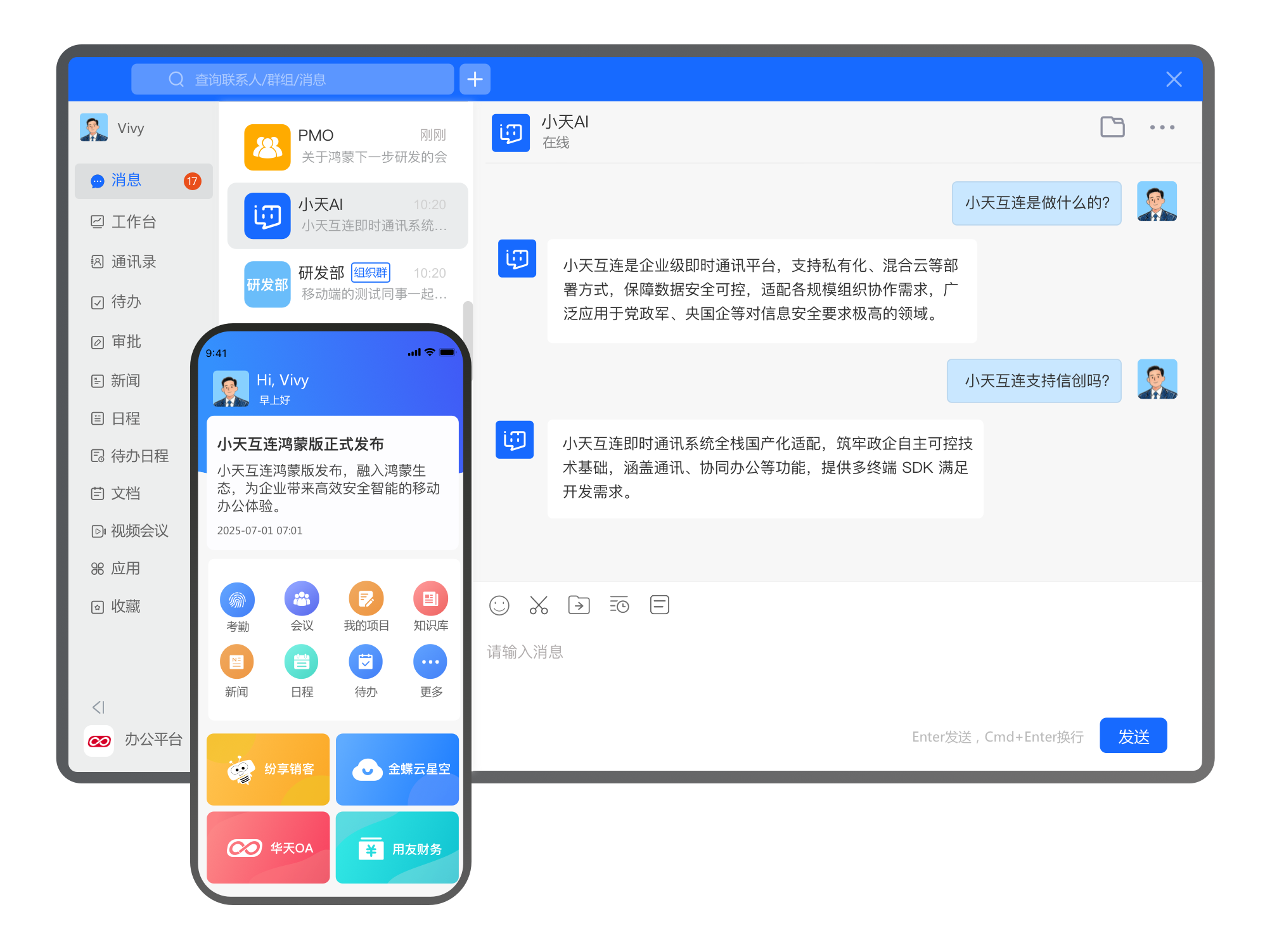 实时畅聊,无缝对接,文字、语音、视频、群组聊天一应俱全,高效便捷,让沟通无界限。