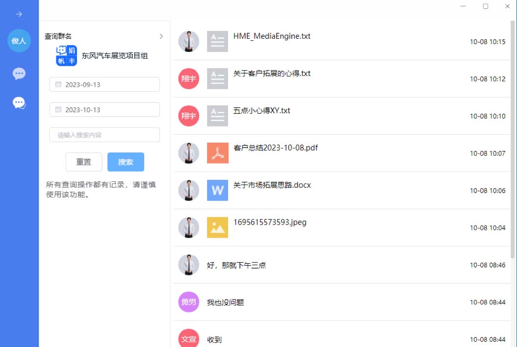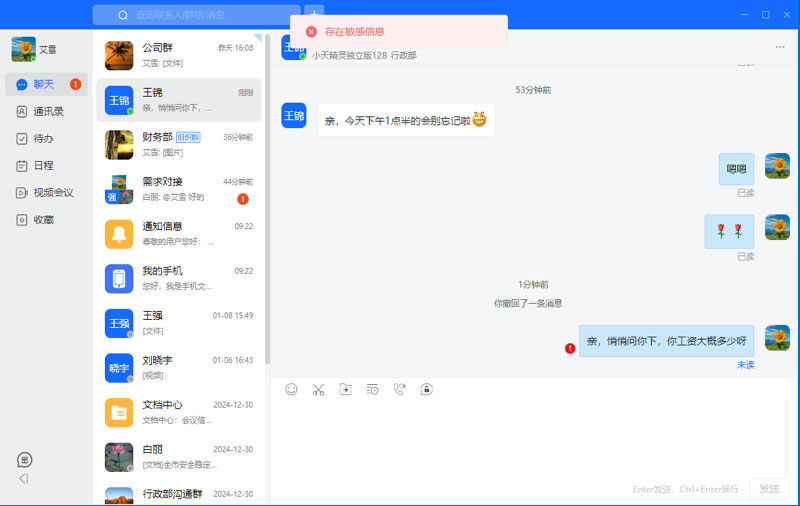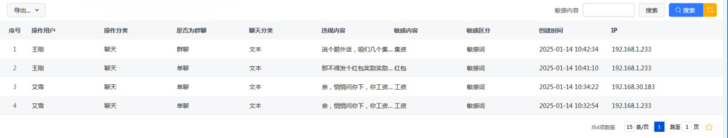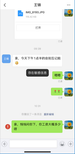 敏感词处理:在企业内部,即使是聊天,也不能无所禁忌,为了避免出现不良影响,可以建立敏感词库,当聊天时有出现敏感词时,系统能够自动过滤并记录日志。