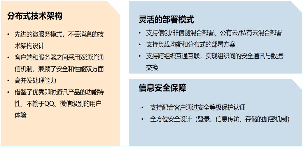 相对于个人即时通讯工具而言,除上述这些基础功能外,企业级的即时通讯系统还被赋予更高的能力。