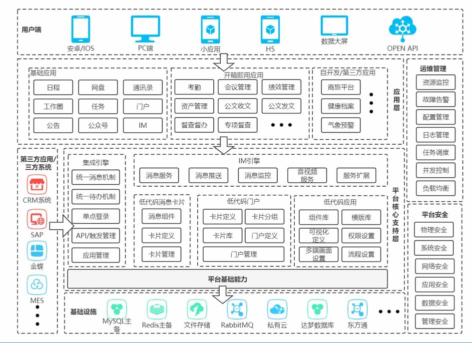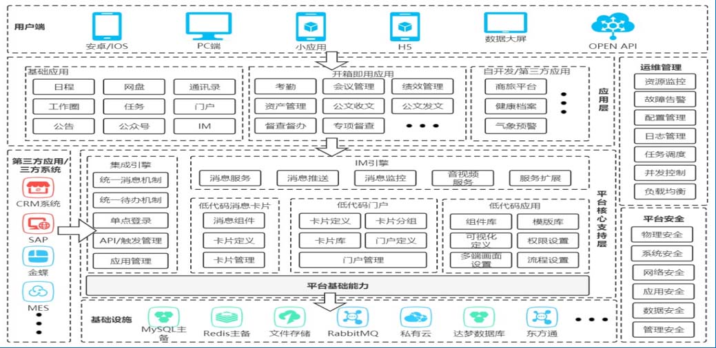 同时,随着移动端业务的兴起,很多业务系统都构建了自己的手机APP,在这种情况下,企业的各级管理人员和员工,都需要在手机上装各种APP。账号记录的繁琐、程序本身的更新以及消息通知的不及时都会给使用人员造成困扰。