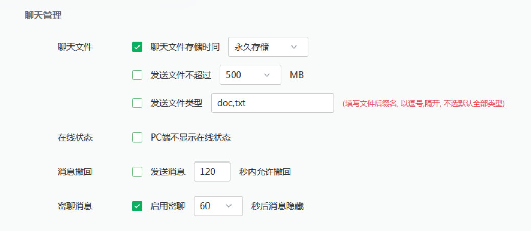 对于一些企业级别的即时通讯系统,还会有很多企业需要用到的功能。如:支持画面水印,支持阅后即焚、音视频聊天、上传文件、表单分享、音视频,支持普通群、组织群,具有超大群组模式等等。