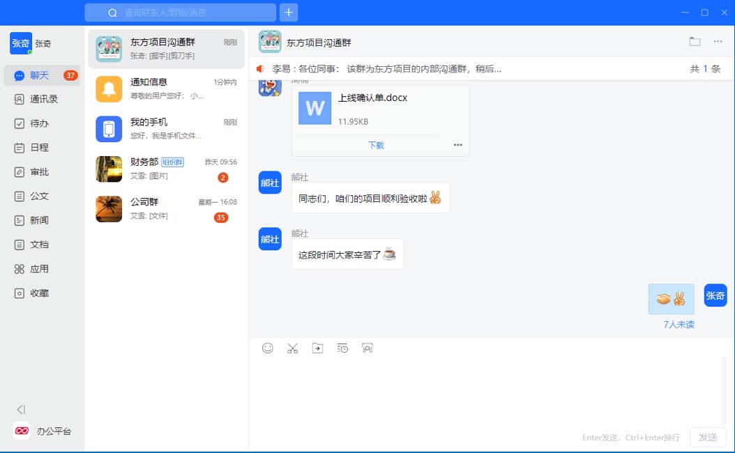 可扩展性:即时通讯系统支持与其他企业应用系统的集成,如OA、ERP等,可以实现信息与数据流的顺畅传递。此外,它们还可以支持第三方应用程序的插入,为企业生产和管理提供全面的支持。