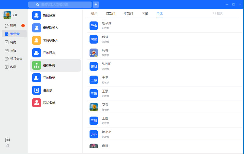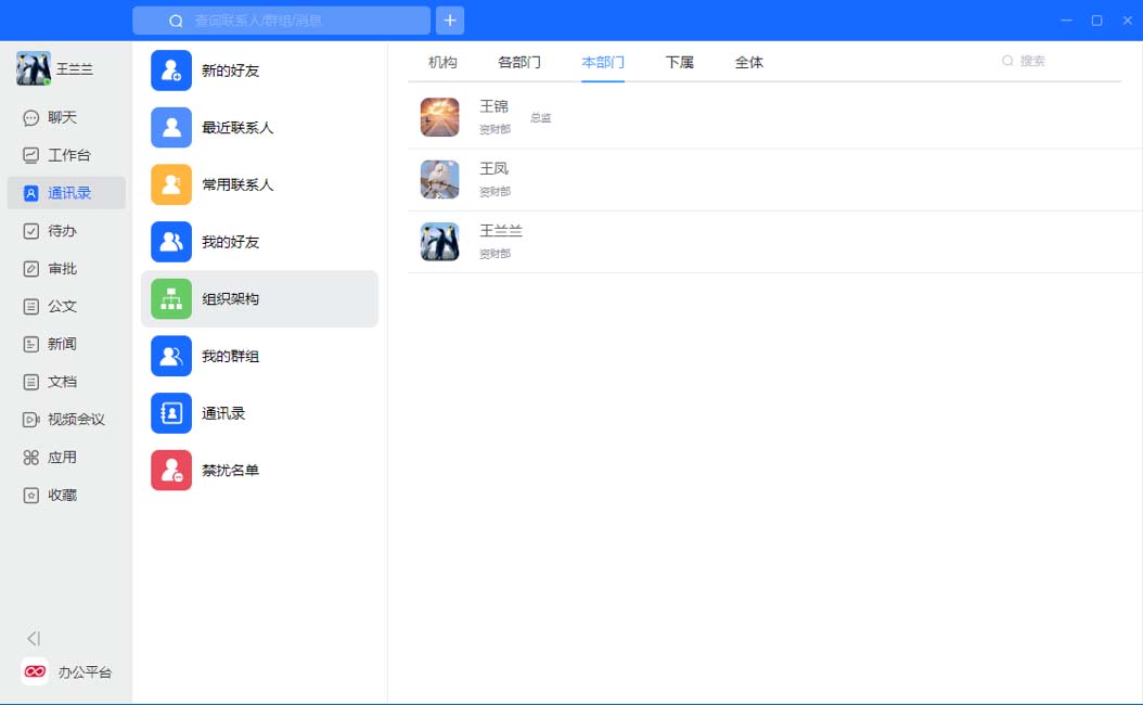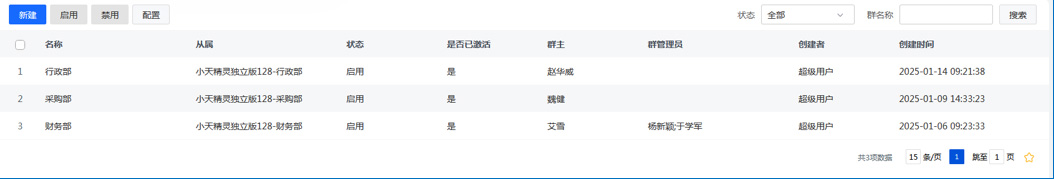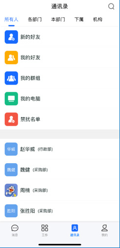 组织群:企业是具有健全的组织的,对于各级分子公司、部门,能够自动建立群,当组织内有人员进出时,能够自动加入/退出组织群,避免了人工操作的繁琐和延时。