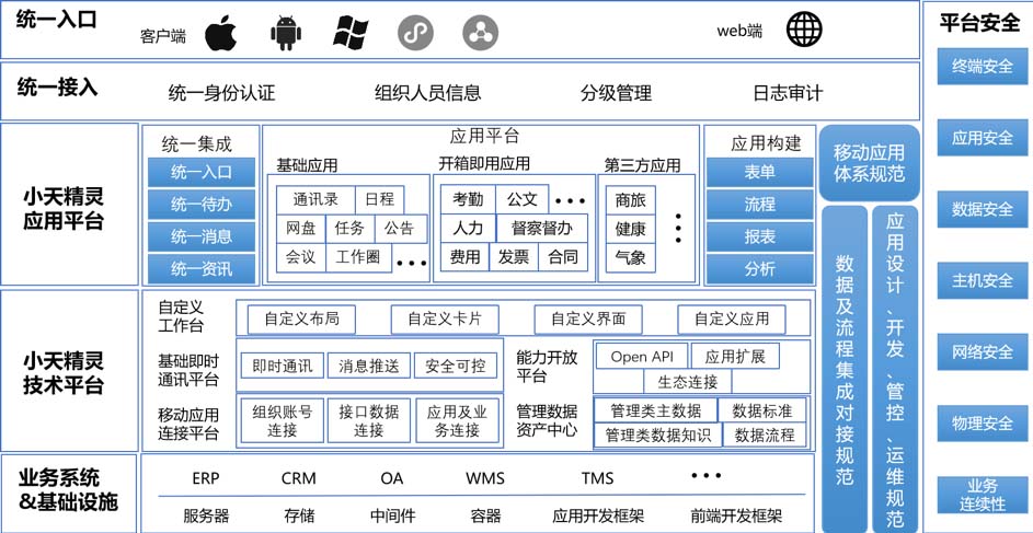 为什么要打造这样一个一体化平台呢?小天互连的产品团队表示:随着企业信息化建设的完善,大量的内控系统和业务系统都在企业内部建设中发挥了各自的作用。但由于每个系统建设时所处的时代和技术的限制,导致了每个系统都是各自为战,而随着企业的发展,这种“历史的包袱”会给使用者带来沉重的使用负担。