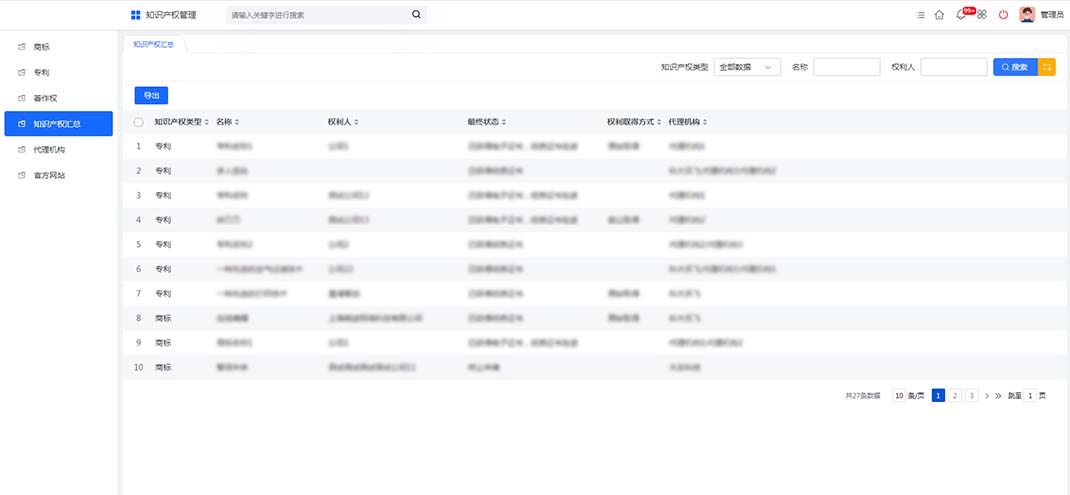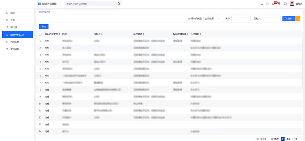 代理机构登记:此模块允许用户登记和管理与公司合作的知识产权代理机构信息,以便于协调和跟踪知识产权相关的事务。
