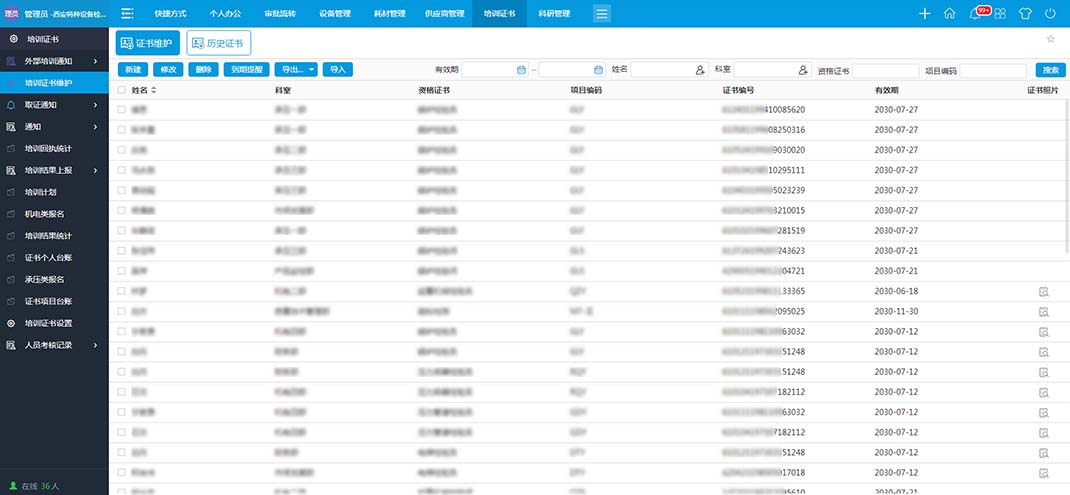 用于管理员工的培训和证书信息,包括培训课程的安排、员工的参与情况、证书的获取和更新等。这有助于确保员工的技能和知识与公司的发展需求保持同步。