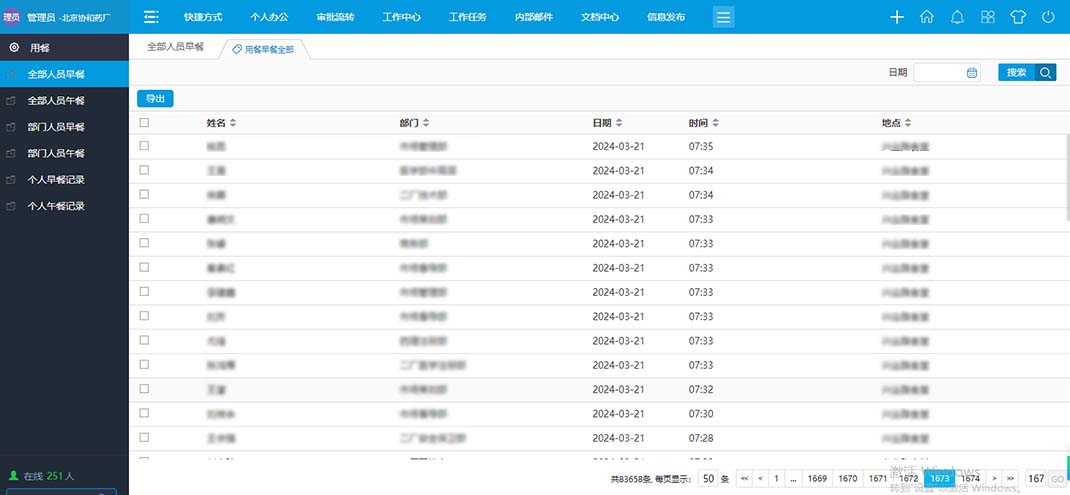 按周预设每日三餐食谱,员工提前提交用餐登记,食堂按登记用餐人数配餐,并在月底生成相应的用餐统计数据。