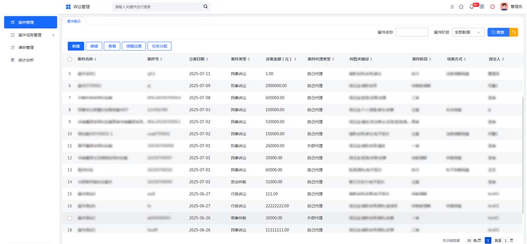 律所登记:用户可以在此模块中录入、查看律师事务所的相关信息,以及在案件登记时进行关联查询。这有助于管理和维护与外部法律服务机构的关系,并确保在需要时能够快速获取相关信息。