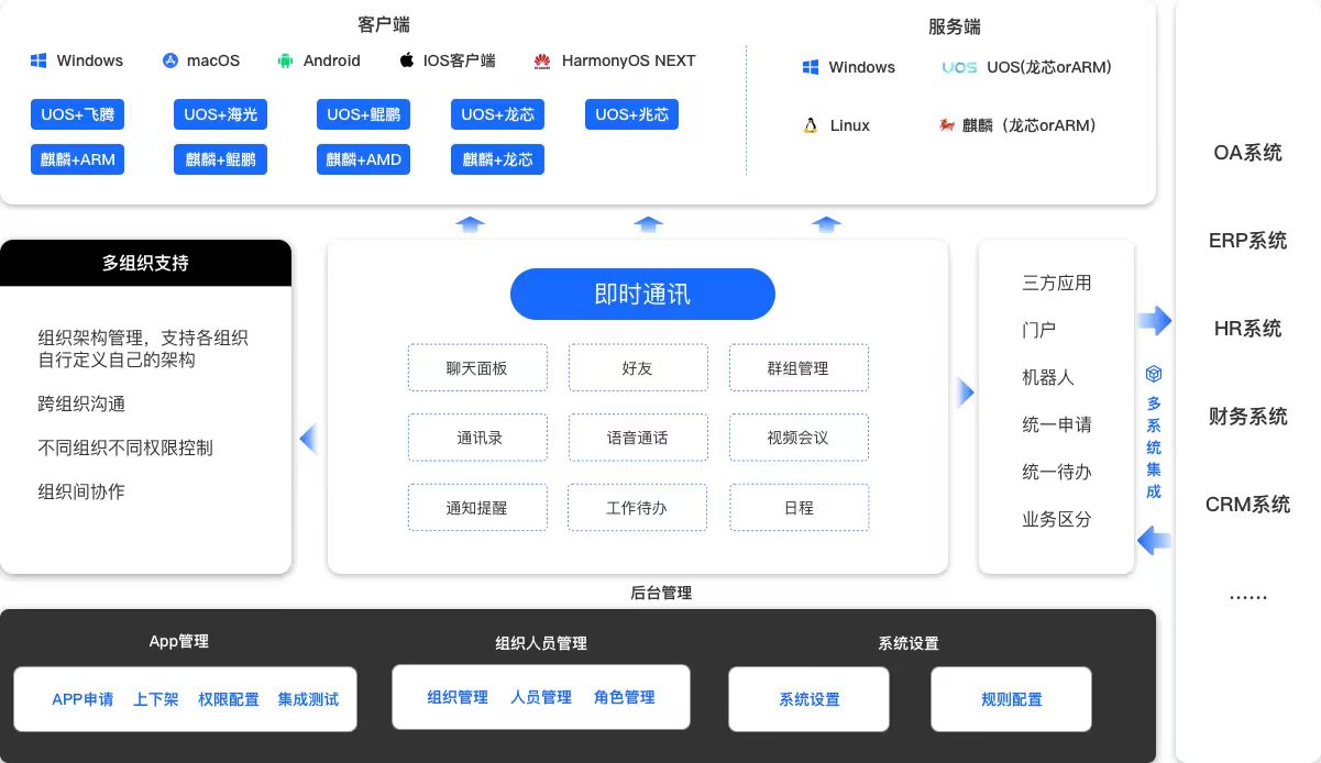 以即时通讯为基座,符合现代办公模式。
